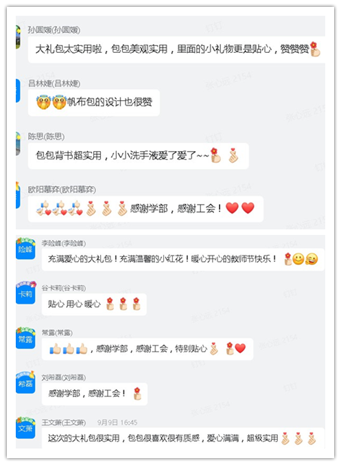 學部老師們收到“教師節大禮包”后紛紛表示非常實用、貼心。老師們的滿意就是學部工會小組最大的快樂!