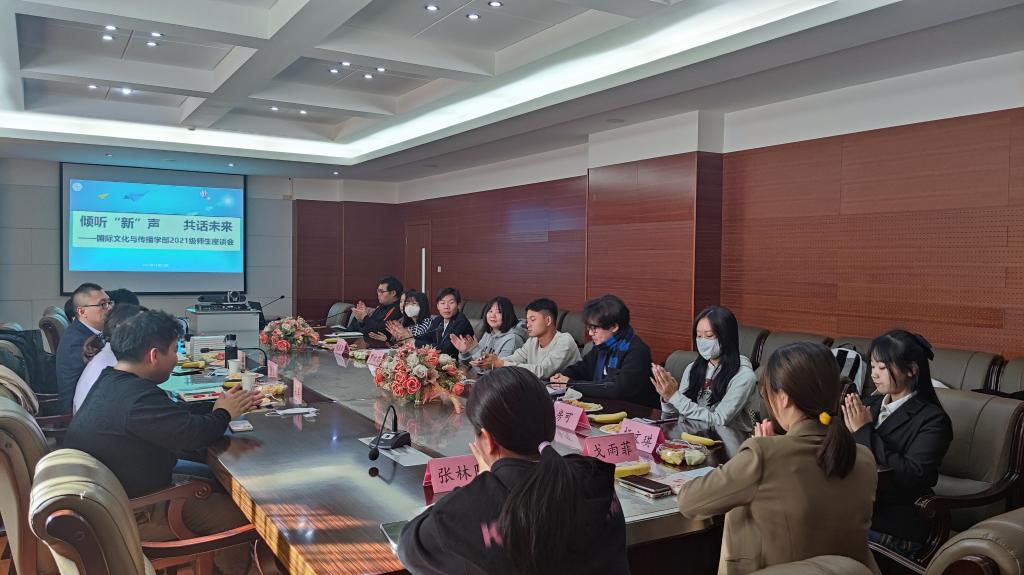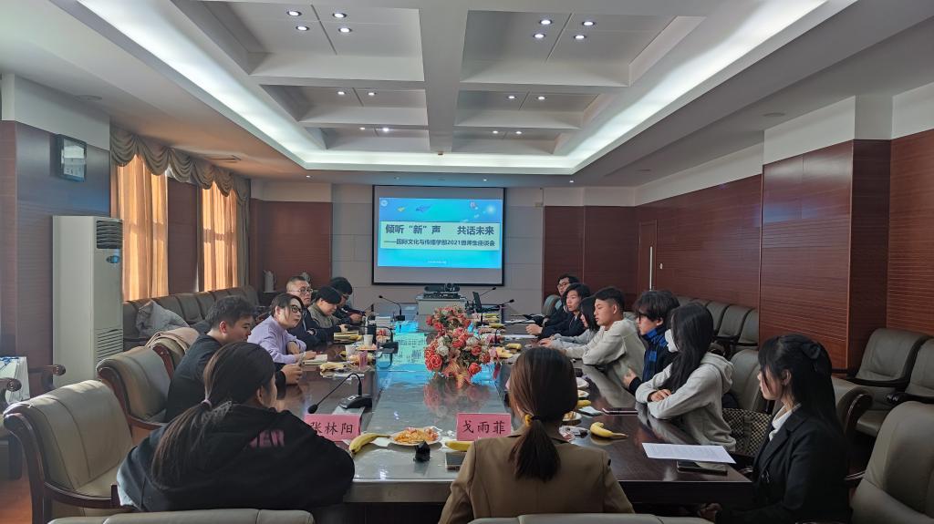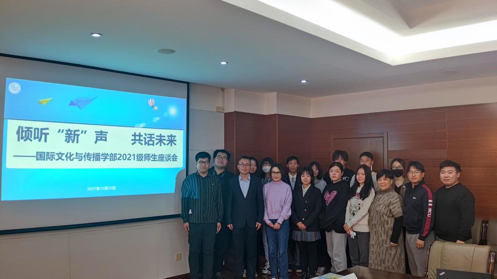 11月23日,文傳學部學工辦召開“傾聽‘新’聲,共話未來”2021級師生座談會,文傳學部黨支部書記周生輝、學工辦主任潘冬梅、學工辦副主任張笛及部分骨干教師、2021級新生代表共同參加本次座談會。會議由潘冬梅主持。