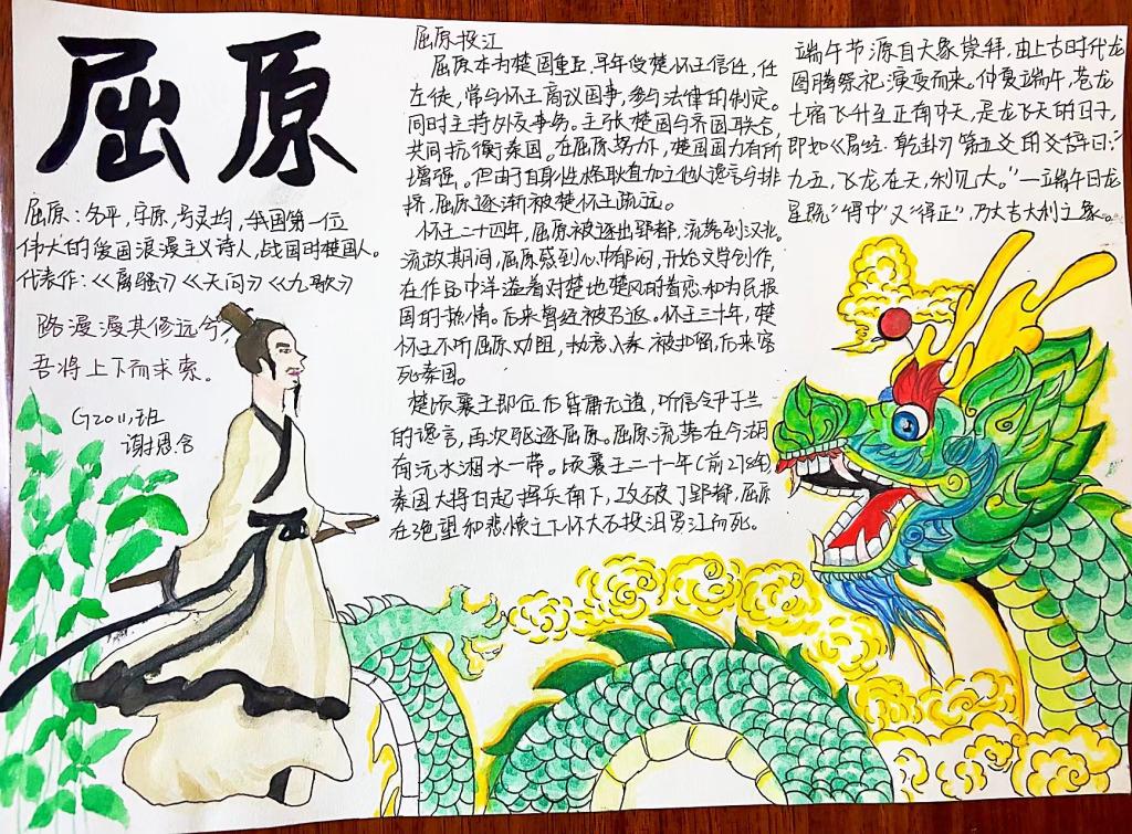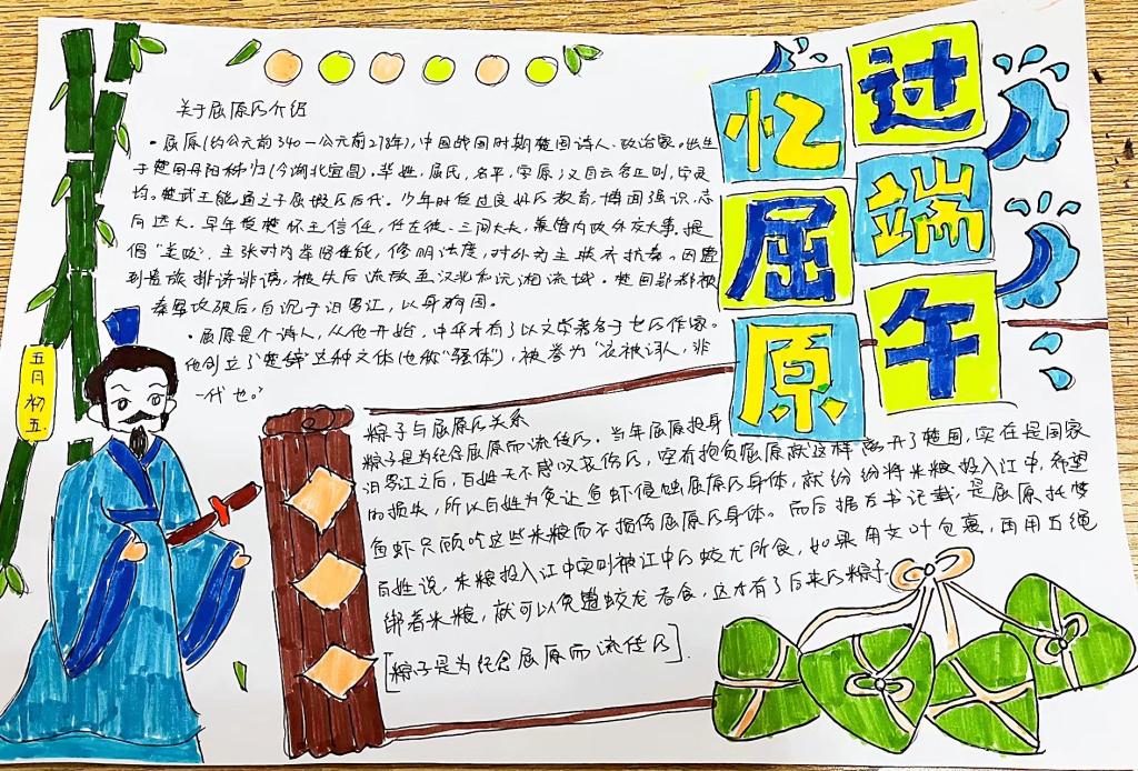同學們通過參與活動更加深刻地理解了屈原愛國主義精神和端午節的文化內涵。同時,同學們能夠以手抄報的形式講好后疫情時代屈原端午文化故事,以中國抗疫精神傳承屈原文化。該文化活動有利于激發同學們同舟共濟、守望相助、共克時艱的愛國主義精神。