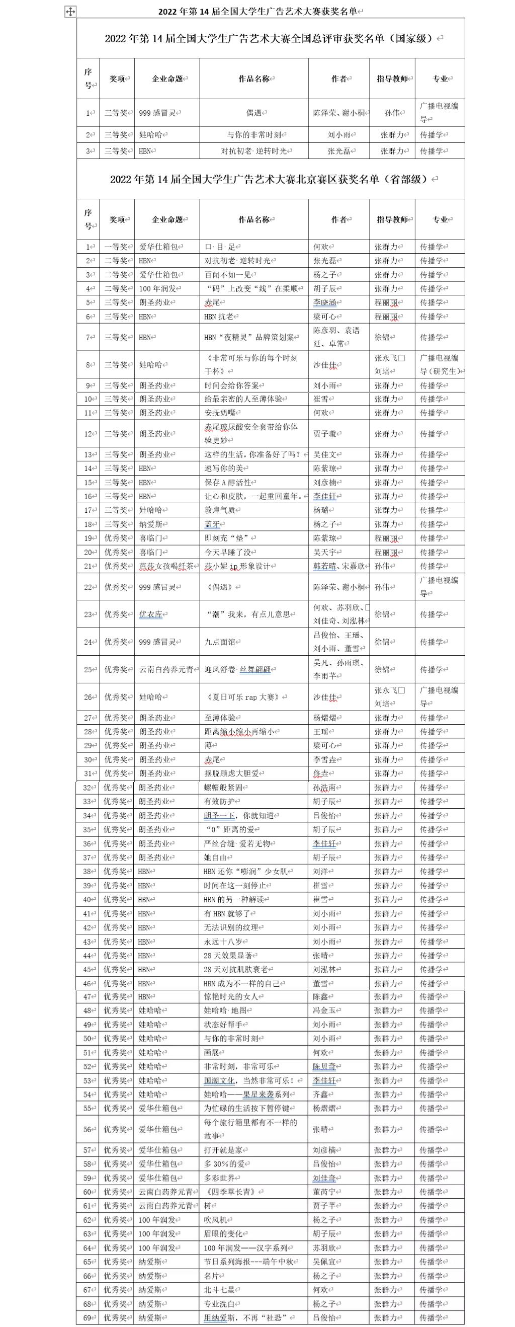 近日,由北京市教育委員會主辦,北京服裝學院時尚傳播學院、大廣賽北京賽區組委會承辦的第十四屆全國大學生廣告藝術大賽(簡稱大廣賽)北京賽區頒獎典禮在線上舉辦。受到疫情影響,本次頒獎典禮在51Meet元宇宙虛擬空間舉行。國際文化與傳播學部傳播系獲得北京賽區一等獎1項,二等獎3項,三等獎14項,優秀獎51項,優秀指導教師獎1項;獲得全國賽區三等獎3項;總計獲得第14屆大廣賽各級各類獎項73項。