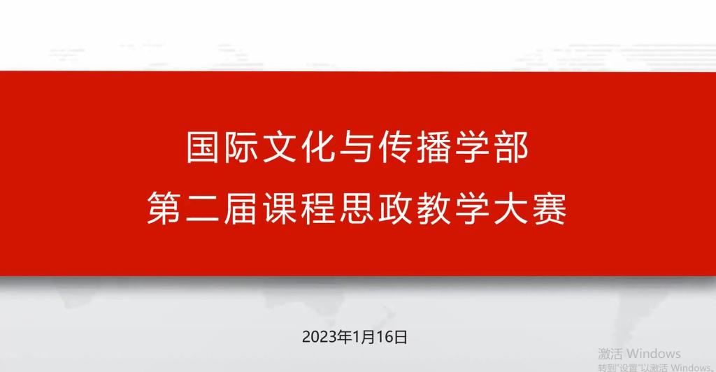 1月16日,國際文化與傳播學部舉辦第二屆課程思政教學大賽。比賽特別邀請第八屆北京高等學校教學名師王培英教授、第九屆北京高等學校教學名師韓建新教授、第九屆北京高校青年教師教學基本功比賽文史類B組一等獎、最佳演示獎、最佳教案獎獲得者陳秀明副教授擔任評委,學部副主任劉嬌月主持,學部全體教師觀摩。