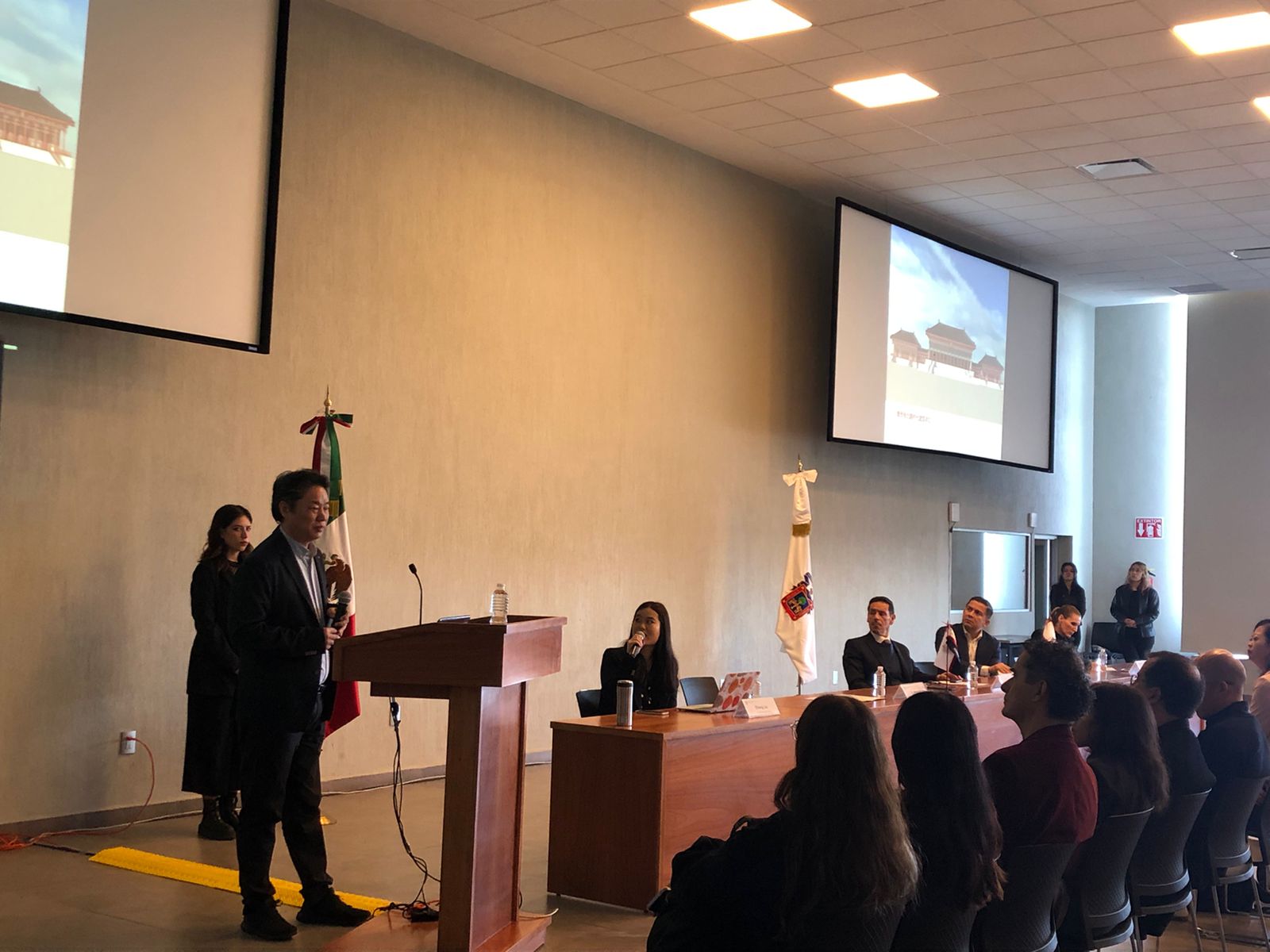 訪(fǎng)問(wèn)中,代表團(tuán)分別走進(jìn)瓜達(dá)拉哈拉大學(xué)藝術(shù)建筑和設(shè)計(jì)學(xué)院、經(jīng)濟(jì)管理學(xué)院,王利民教授、陳潔民副教授為兩個(gè)學(xué)院的師生分別帶來(lái)了以“中國(guó)建筑中的藝術(shù)表達(dá)”“中墨雙邊貿(mào)易“為主題的講座,現(xiàn)場(chǎng)氣氛熱烈。學(xué)術(shù)活動(dòng)后,代表團(tuán)與兩個(gè)學(xué)院的領(lǐng)導(dǎo)進(jìn)行了座談,雙方表達(dá)了下一步合作意向,并期待下一階段的深入交流。在瓜達(dá)拉哈拉大學(xué)孔子學(xué)院,表演學(xué)部李楠老師為到場(chǎng)的學(xué)生和當(dāng)?shù)孛癖娊榻B了中國(guó)的京劇藝術(shù),生動(dòng)細(xì)致的講解讓在場(chǎng)觀眾了解了中國(guó)國(guó)粹藝術(shù),到場(chǎng)學(xué)生紛紛表達(dá)了對(duì)中國(guó)文化的喜愛(ài)。