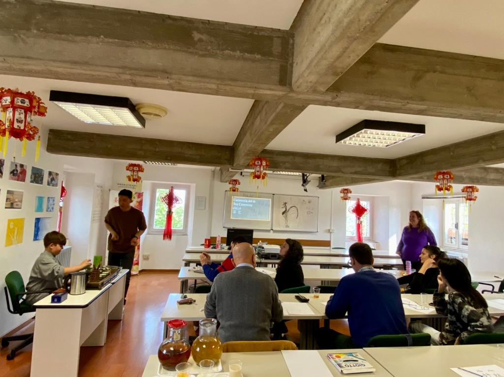 近日,圣馬力諾孔子學院開展民俗活動,邀請當地民眾品谷雨茶,制谷雨貼,習八段錦,紀念中國民間傳說中創字的倉頡,致敬第四屆“國際中文日”。