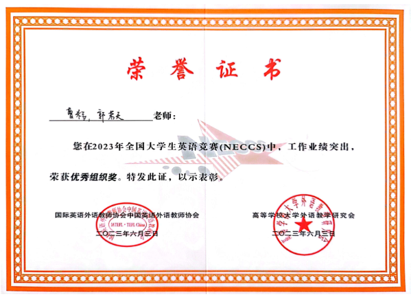 我校獲得大賽組委會頒發的優秀組織獎;文傳學部曹米多和郭若天老師獲得優秀組織獎;作為一等獎獲得者的指導教師李雪薇獲得了表彰榮譽證書。