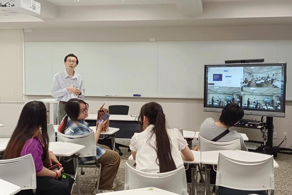 在京都期間,師生們受到合作院校京都情報(bào)大學(xué)院大學(xué)寺下陽(yáng)一校長(zhǎng)熱情接待,共同走訪了京都情報(bào)大學(xué)院大學(xué)不同校區(qū),參觀了實(shí)驗(yàn)室、圖書(shū)館、演播廳等,體驗(yàn)了京都情報(bào)大學(xué)院大學(xué)線上線下混合授課。在工作坊文化探訪環(huán)節(jié),師生們還參觀了京都著名的金閣寺、二條城等世界文化遺產(chǎn),并進(jìn)行了創(chuàng)作采風(fēng)。