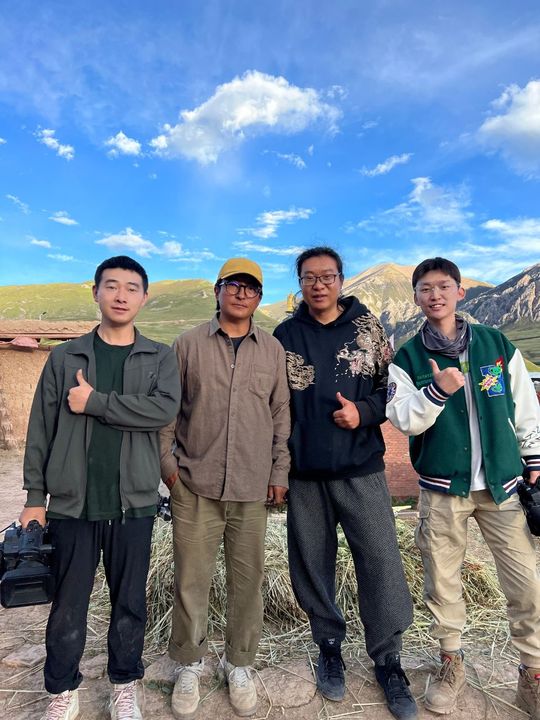 (從左到右依次:學生羅挺 導演達杰丁增 制片人蘇明晴 學生張梁)