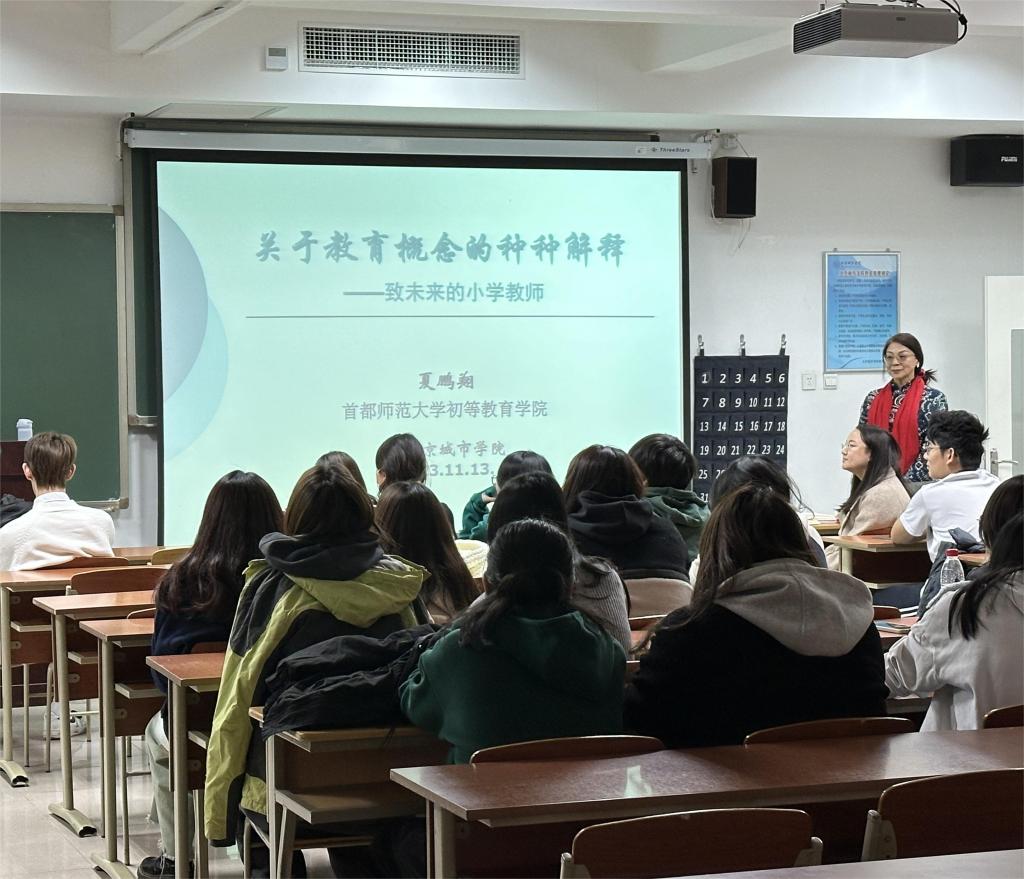 11月13日,文傳學部2023級小學教育(貫通)專業在航天城校區舉辦教育專業導論系列主題講座。本次活動特邀首都師范大學初等教育學院夏鵬翔教授進行題為“關于教育概念的種種解釋——致未來的小學教師”的專題講座。