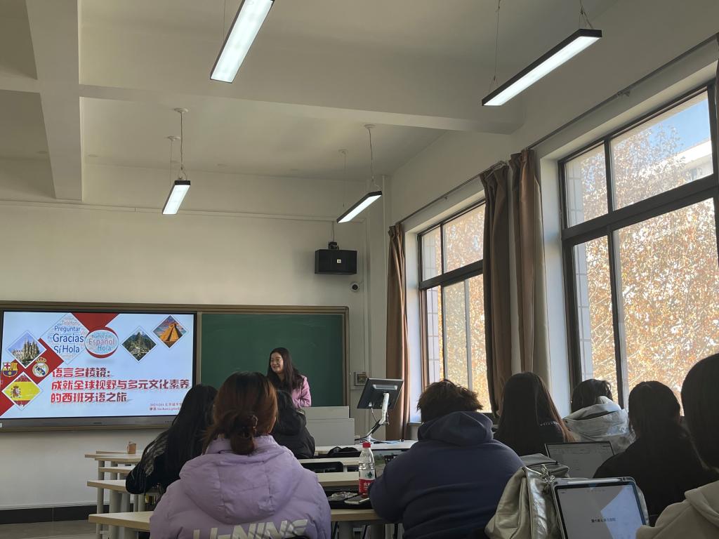 廖菡首先為2023級西班牙語專業全體學生開展了題為 “語言多棱鏡:成就全球視野與多元文化素養的西班牙之旅”的講座。講座圍繞西班牙語重要國際地位,深厚歷史文化底蘊展開,講述西班牙語學習發展趨勢,引導同學們學好語言文化,厚積薄發,成為具有國際視野和深厚文化素養的西班牙語應用型人才。