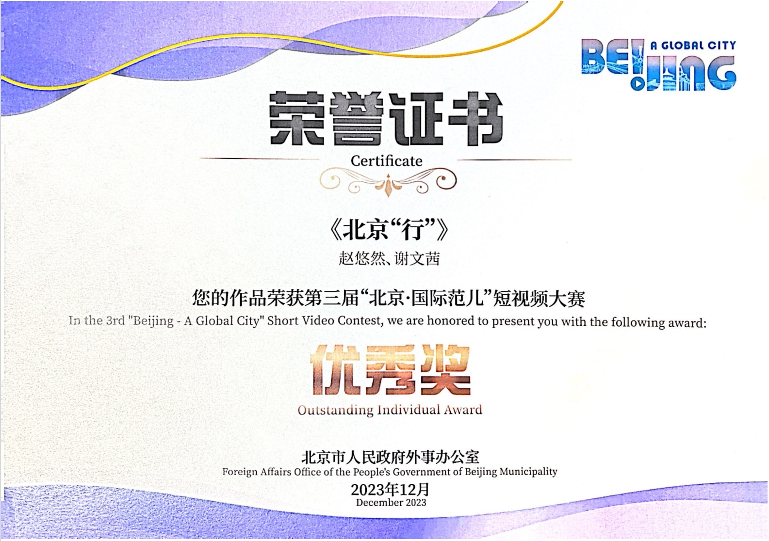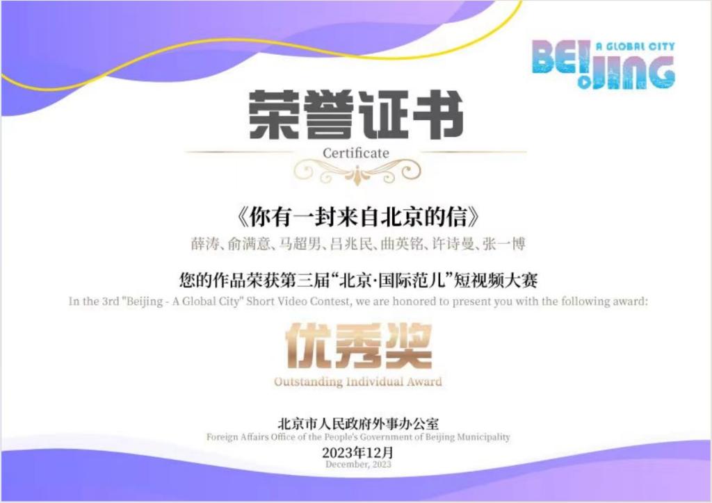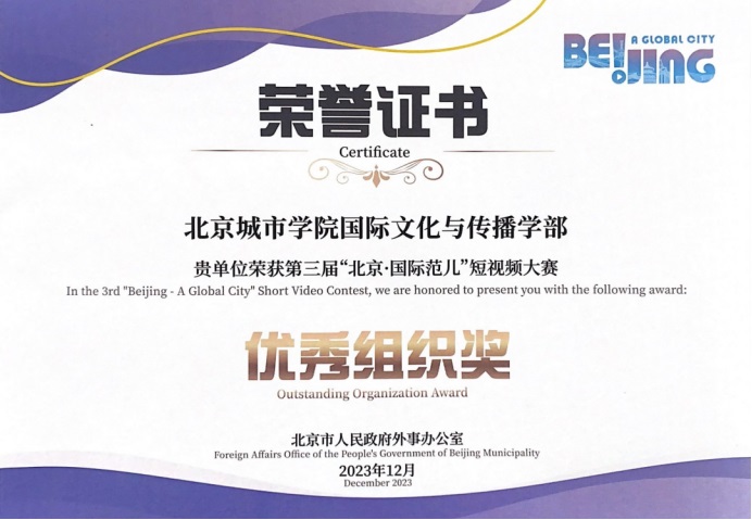 近日,國際文化與傳播學部戲劇與影視專業(廣播電視領域)研究生和廣播電視編導專業本科生創作的作品,在第三屆“北京·國際范兒”短視頻大賽中獲多項獎項。
