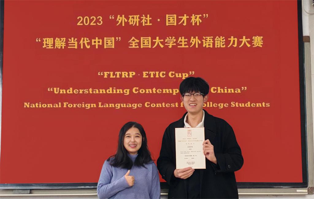 近日,文傳學(xué)部2022級英語專業(yè)學(xué)生徐新在“外研社·國才杯”“理解當(dāng)代中國”全國大學(xué)生外語能力大賽英語組寫作賽項榮獲銀獎,文傳學(xué)部英語教研室教師曹米多獲優(yōu)秀指導(dǎo)教師獎。