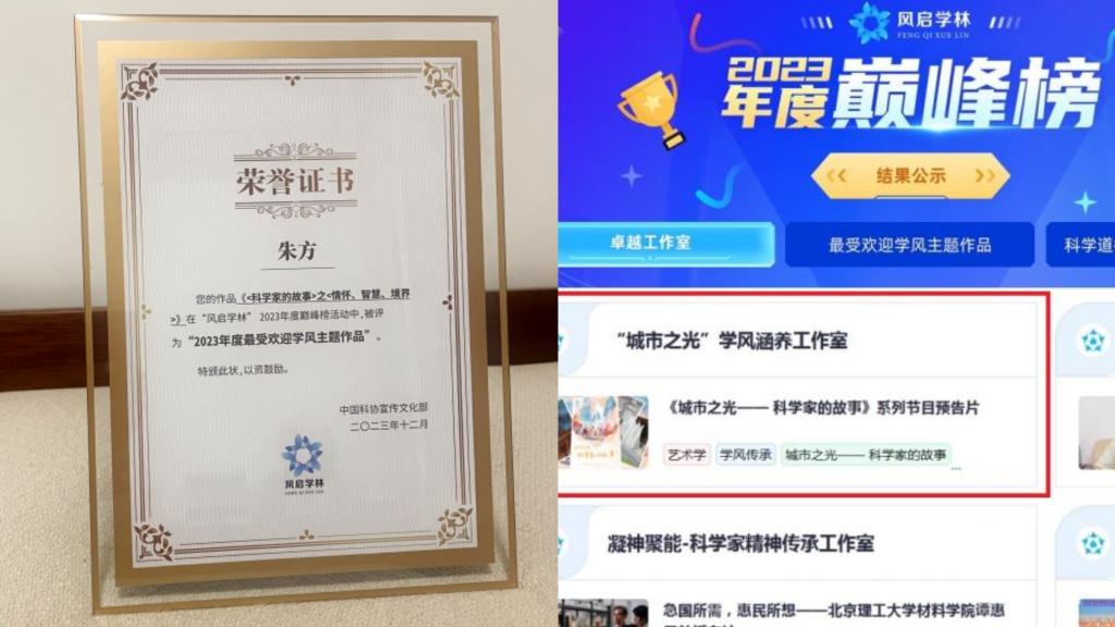 近日,中國科學技術協會“風啟學林”社區官方網站公布2023年度巔峰榜,我校《城市之光——科學家的故事》系列節目多項成果榜上有名,我校“城市之光”學風涵養工作室被評選為2023年度卓越工作室。專訪我校李升科教授的節目《情懷、智慧、境界》獲評2023年度最受歡迎學風主題作品。《城市之光——科學家的故事》系列節目入選中國科協2023年學風傳承行動科學家故事研習項目優秀案例。我校系列作品受到中國科協領導及評審專家高度認可。