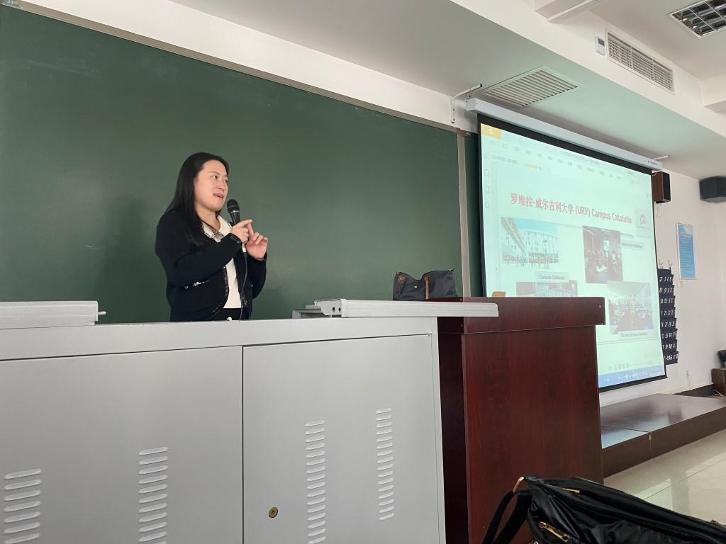 當(dāng)天中午,羅維拉大學(xué)的三位老師為西班牙語(yǔ)專業(yè)在校學(xué)生在航天城校區(qū)教一樓209教室作了詳細(xì)的項(xiàng)目介紹和生動(dòng)的文化主題講座,并為同學(xué)們贈(zèng)送了羅維拉大學(xué)的文創(chuàng)小禮物。同學(xué)們積極互動(dòng),現(xiàn)場(chǎng)氣氛熱烈。