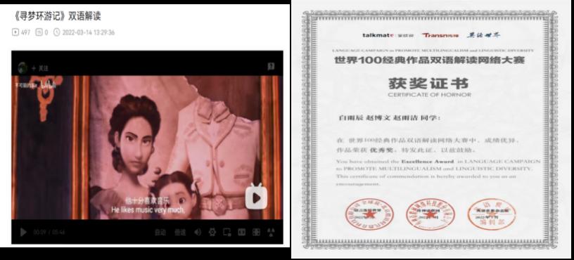 學生的視頻字幕翻譯作品評為第一屆國際短視頻網紅大賽優秀作品
