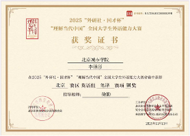 2025“外研社·國才杯”“理解當代中國”全國大學生外語能力大賽北京賽區英語組筆譯賽項銅獎 |