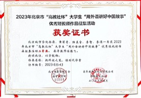 學生在2023年北京市“高教社杯”大學生“用外語講好中國故事”優秀短視頻作品征集活動中榮獲二等獎