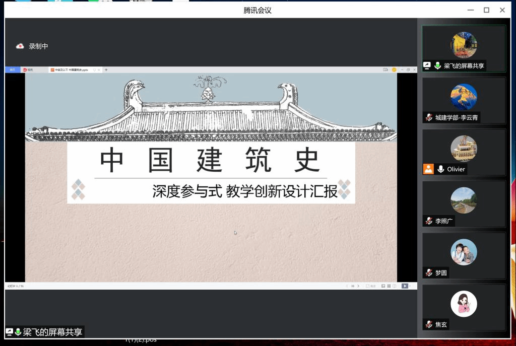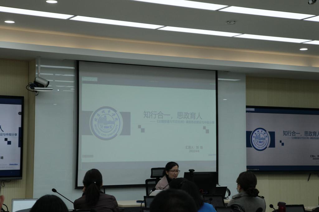 隨后,國際文化與傳播學部劉培老師進行了《出鏡報道與節目主持》課程思政示范課程建設經驗分享,城市建設學部梁飛老師進行了《中國建筑史》創新教學設計經驗分享。分享內容包括課程建設的思路方法與成效、教師成長、申報書撰寫、申報感悟與體會等方面。與會教師圍繞兩位老師的分享進行了交流和互動。