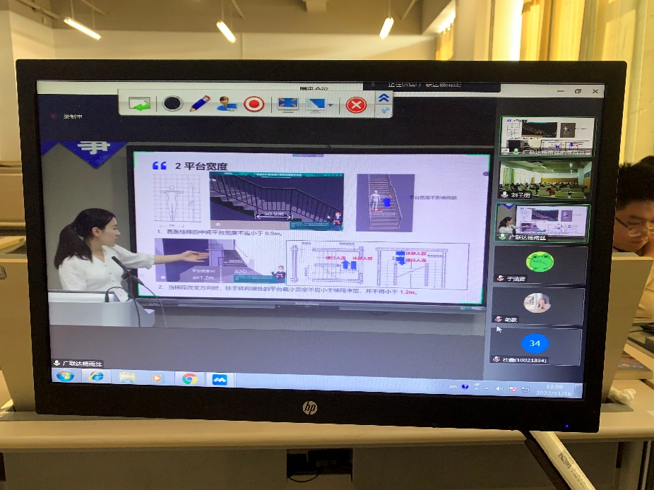 11月9日,來(lái)自廣聯(lián)達(dá)的兩位資深工程師楊雨絲、杜鑫與學(xué)部教師為我校2021級(jí)建筑學(xué)專業(yè)學(xué)生系統(tǒng)介紹了專業(yè)相關(guān)技術(shù)規(guī)范,利用前沿的視覺(jué)媒體技術(shù)提升學(xué)生對(duì)理論課程的興趣并建立起理論知識(shí)與實(shí)踐應(yīng)用之間的關(guān)系。同時(shí),借助虛擬仿真教學(xué)系統(tǒng),利用多角度場(chǎng)景的虛擬現(xiàn)實(shí)展現(xiàn),讓學(xué)生在三維圖示中清晰地理解并掌握各種設(shè)計(jì)方法和無(wú)障礙設(shè)施的布置方式。