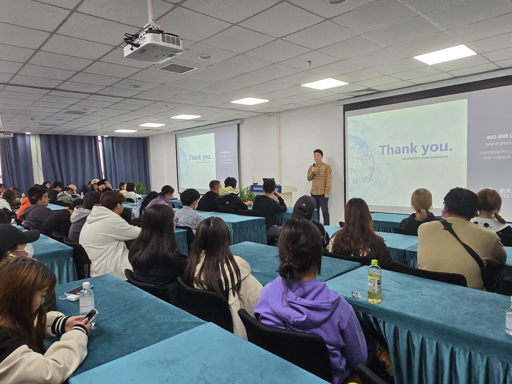 師生一行首先參觀了公司三層展廳,對我國遙感領域的前沿技術有了深刻的認識,后聽取了無人機事務部的專業講座。講座后,正在公司進行實習的學生代表與新生分享了在校學習和企業實習經驗。現場氣氛濃烈,學生們對本專業有了清晰的認識,對專業的前景有著強烈的期盼。