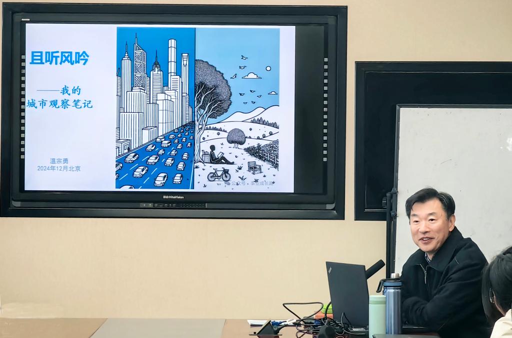 溫教授深耕城市規(guī)劃管理領(lǐng)域四十載,以深厚的實(shí)踐積淀為基石,化繁為簡(jiǎn),生動(dòng)闡釋了城市規(guī)劃的核心邏輯與時(shí)代使命。課程以幾座總部大樓的設(shè)計(jì)和建設(shè)破題,并聚焦北京西長(zhǎng)安街沿線的經(jīng)典案例,通過(guò)對(duì)電報(bào)大樓、中國(guó)銀行、遠(yuǎn)洋大廈等標(biāo)志性建筑的深度解析,系統(tǒng)展現(xiàn)了從設(shè)計(jì)構(gòu)思、審批流程到建設(shè)落地的全周期管理。溫教授以“城市發(fā)展脈絡(luò)”為軸,結(jié)合可持續(xù)發(fā)展與人文關(guān)懷,剖析了現(xiàn)代城市規(guī)劃中“人與自然和諧共生”的深刻內(nèi)涵,為新生勾勒出專(zhuān)業(yè)學(xué)習(xí)的清晰圖景。