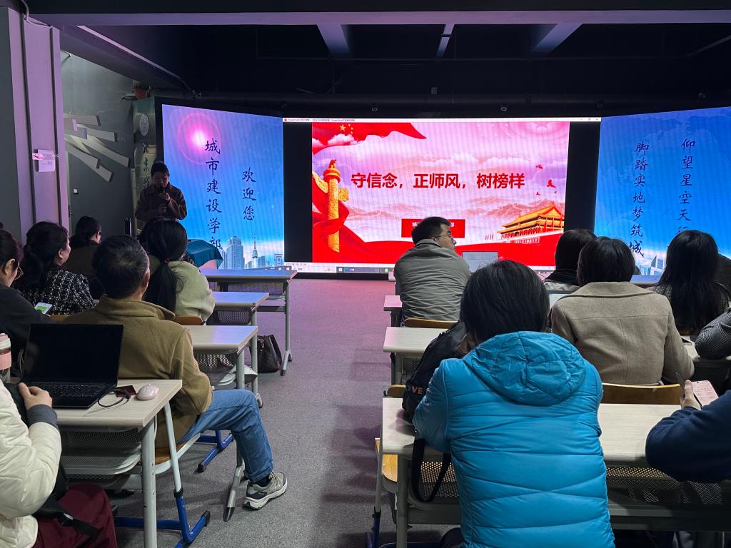 10月30日,城市建設學部黨支部在5號實訓樓大廳開展“守信念,正師風,樹榜樣”主題黨日活動,黨支部書記李云青主持。