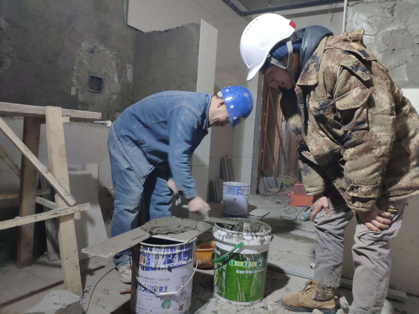 與工人師傅交流施工要點