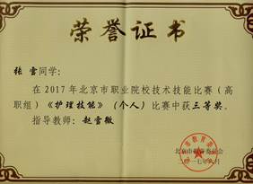 學(xué)科競(jìng)賽獲獎(jiǎng):臺(tái)灣大仁科技大學(xué)創(chuàng)新創(chuàng)業(yè)大賽創(chuàng)新創(chuàng)業(yè)大賽第一名、第二名及務(wù)實(shí)專(zhuān)題第二名;北京市高等職業(yè)院校“華辰美締杯”護(hù)理技能比賽三等獎(jiǎng)1個(gè),優(yōu)秀獎(jiǎng)3個(gè);北京城市學(xué)科護(hù)理禮儀風(fēng)采大賽一等獎(jiǎng)1個(gè),二等獎(jiǎng)3個(gè),三等獎(jiǎng)5個(gè),優(yōu)勝獎(jiǎng)11個(gè);2018年北京市高職院校護(hù)理技能大賽三等獎(jiǎng)1人,優(yōu)秀獎(jiǎng)3人。