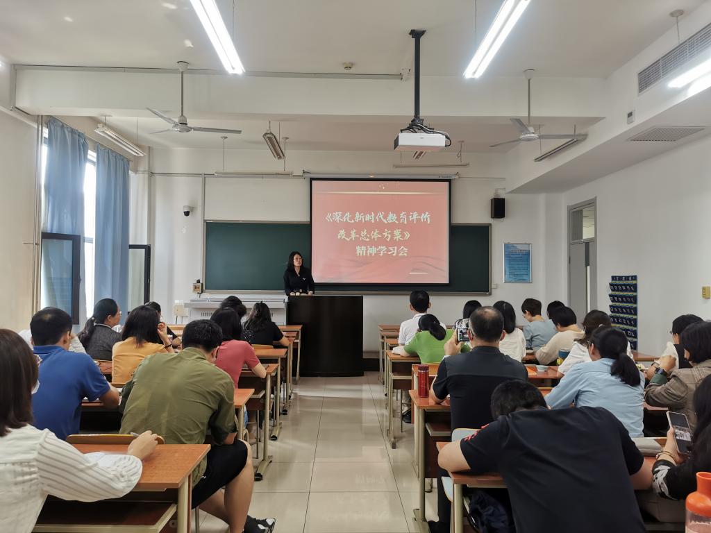 2021年9月8日,生物醫藥學部在航天城校區綜合樓309召開全體教師會,就黨的教育方針和中共中央國務院辦公廳印發的《深化新時代教育評價改革總體方案》相關內容進行專題學習。