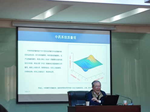 喬延江首先以“方與劑”“質(zhì)與量”“量變與質(zhì)變”等關(guān)鍵詞結(jié)合中藥質(zhì)量與質(zhì)量標(biāo)準(zhǔn)在研究技術(shù)和研究模式等領(lǐng)域的最新進(jìn)展闡釋了中藥系統(tǒng)質(zhì)量觀,并從中藥物質(zhì)質(zhì)量屬性構(gòu)效關(guān)系層面、過(guò)程質(zhì)量傳遞的規(guī)律性和周期可靠性等方面結(jié)合舉例進(jìn)行了深入講授;又以《中藥標(biāo)準(zhǔn)管理專(zhuān)門(mén)規(guī)定》(征求意見(jiàn)稿)中的八項(xiàng)基本原則以及中藥材、中藥飲片、中藥配方顆粒(提取物)、中成藥的標(biāo)準(zhǔn)進(jìn)行了針對(duì)性解讀和強(qiáng)調(diào),為學(xué)部中藥學(xué)數(shù)字化平臺(tái)建設(shè)明確了方向和標(biāo)準(zhǔn)參考。