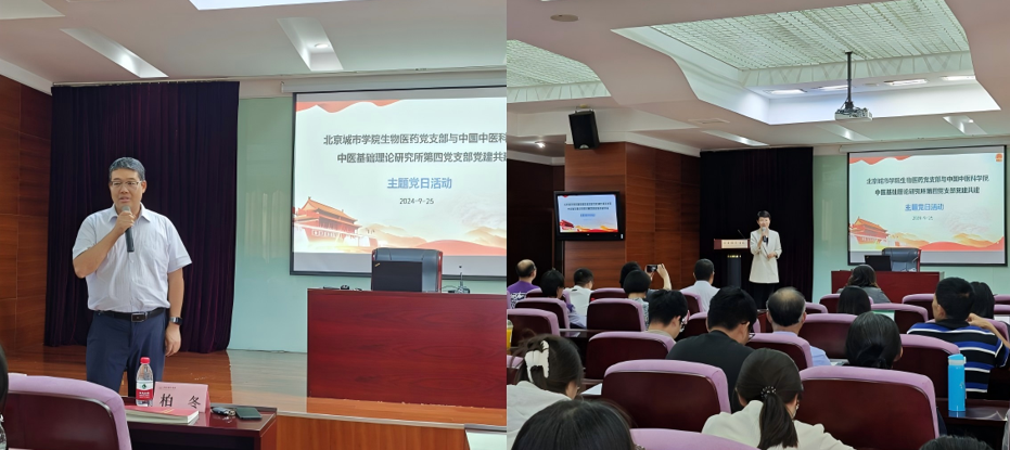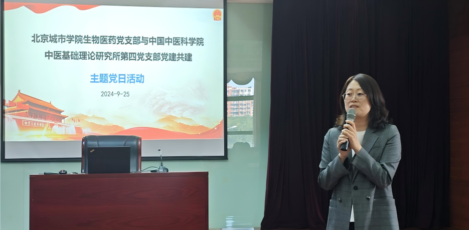 9月25日,北京城市學院生物醫藥黨支部與中國中醫科學院中醫基礎理論研究所第四黨支部開展了以“傳承中醫藥文化,賦能科研創新”為主題的黨建聯建主題黨日活動。中醫基礎理論研究所第四黨支部所屬中醫基礎理論研究所方證中心主任、黨支部書記柏冬研究員帶領支部黨員教師到航天城校區共同座談交流,生物醫藥學部王輝主任出席聯建活動,黨支部書記楊春梅主持會議,生物學部全體黨員參與本次活動。