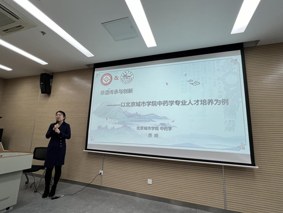 北京城市學院中藥學教研室厲妲主任梳理了中醫藥非遺項目的主要數據,并從師資團隊、課程建設、實踐育人平臺、學生培養等方面匯報了中藥學專業在中醫藥非遺傳承的中人才的培養和發展思考。