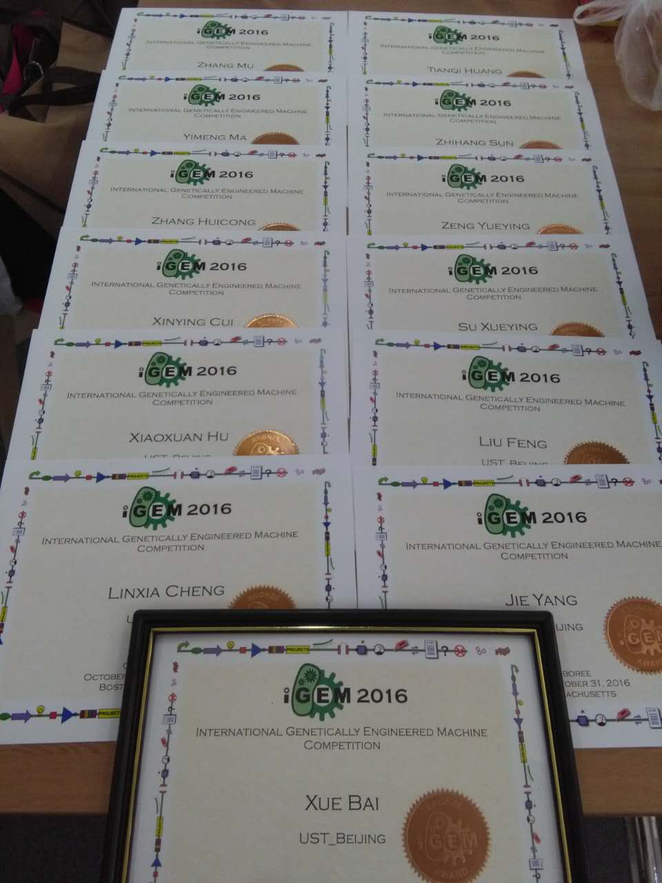 今年由來自北京城市學院的黃天琪同學和科技大學的王重陽同學分別作為隊長帶領兩校同學積極參與,在北京科技大學宋青老師和我校白雪老師的指導下,精心選題,積極參與實驗,設計團隊參賽海報和網頁,終于獲得了理想的實驗結果和好的比賽成績。