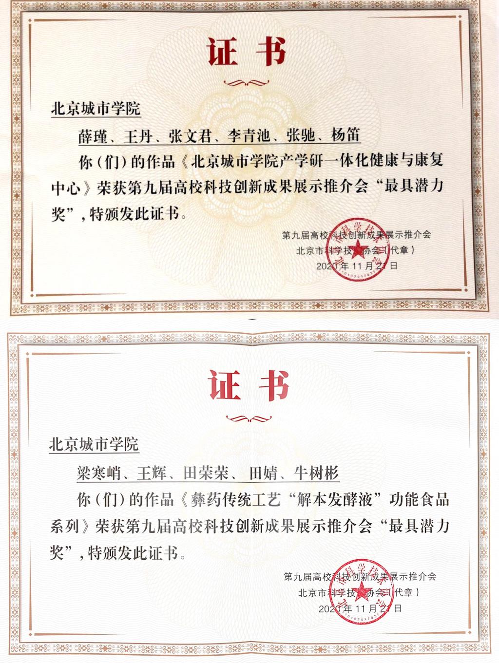 經過前期項目初評,評委會從60多個教師項目中選擇5項在高校教師項目路演環節進行現場展示推薦,我校生物醫藥學部梁寒峭教師團隊《彝藥傳統工藝“解本發酵液”功能食品系列》項目及薛瑾教師團隊《北京城市學院產學研一體化健康與康復中心》項目作為表現突出的項目團隊分別由梁寒峭和王丹教師進行路演展示,并均榮獲“最具潛力獎”。其中,梁寒峭教師團隊的科技創新成果“解本發酵液”系列功能食品以刺梨、余甘子、檸檬、天麻、靈芝和蜂蜜等藥食兩用原料,經過近 5 年的配方優化現已得到功能穩定的原料配比及固定的原料采集基地,且體外細胞試驗已證明其對新型冠狀病毒SARS-CoV-2具有良好的抑制作用,有望滿足后疫情時代人們對高品質健康食品市場的需求。