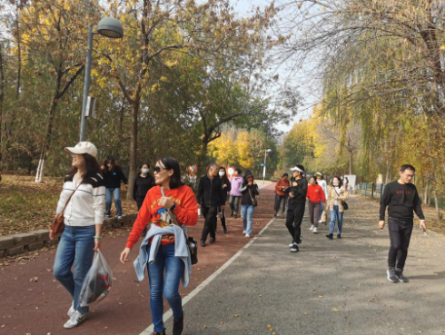 活動于下午一點半在奧森北園西門正式開始,大家興致高昂,熱情洋溢,沿公園健身步道一同向南出發,途徑銀杏林、花海等景觀點時,老師們紛紛駐足欣賞,打卡合影,共同感受多彩的深秋美景,在輕松的氛圍中盡情享受運動的樂趣。