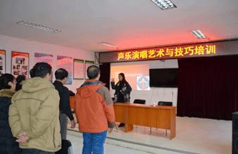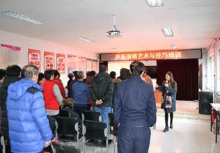 為推動(dòng)社會(huì)主義文藝大發(fā)展大繁榮,弘揚(yáng)社會(huì)主義核心價(jià)值觀,2018年12月18日,北京城市學(xué)院表演學(xué)部聲樂(lè)教師錢楨穎前往順義區(qū)勝利街道龍府花園社區(qū)開(kāi)展高雅藝術(shù)進(jìn)社區(qū)——“聲樂(lè)演唱藝術(shù)與技巧”講座,并對(duì)社區(qū)藝術(shù)團(tuán)進(jìn)行聲樂(lè)指導(dǎo)。
