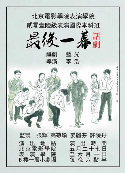 《最后一幕》是由藍光編劇,中國青年藝術劇院于1958年首演。寫的是“抗敵演劇隊”在國統區經歷了10年特殊的斗爭生活之后,內戰發生時面臨著新的危機和挑戰。