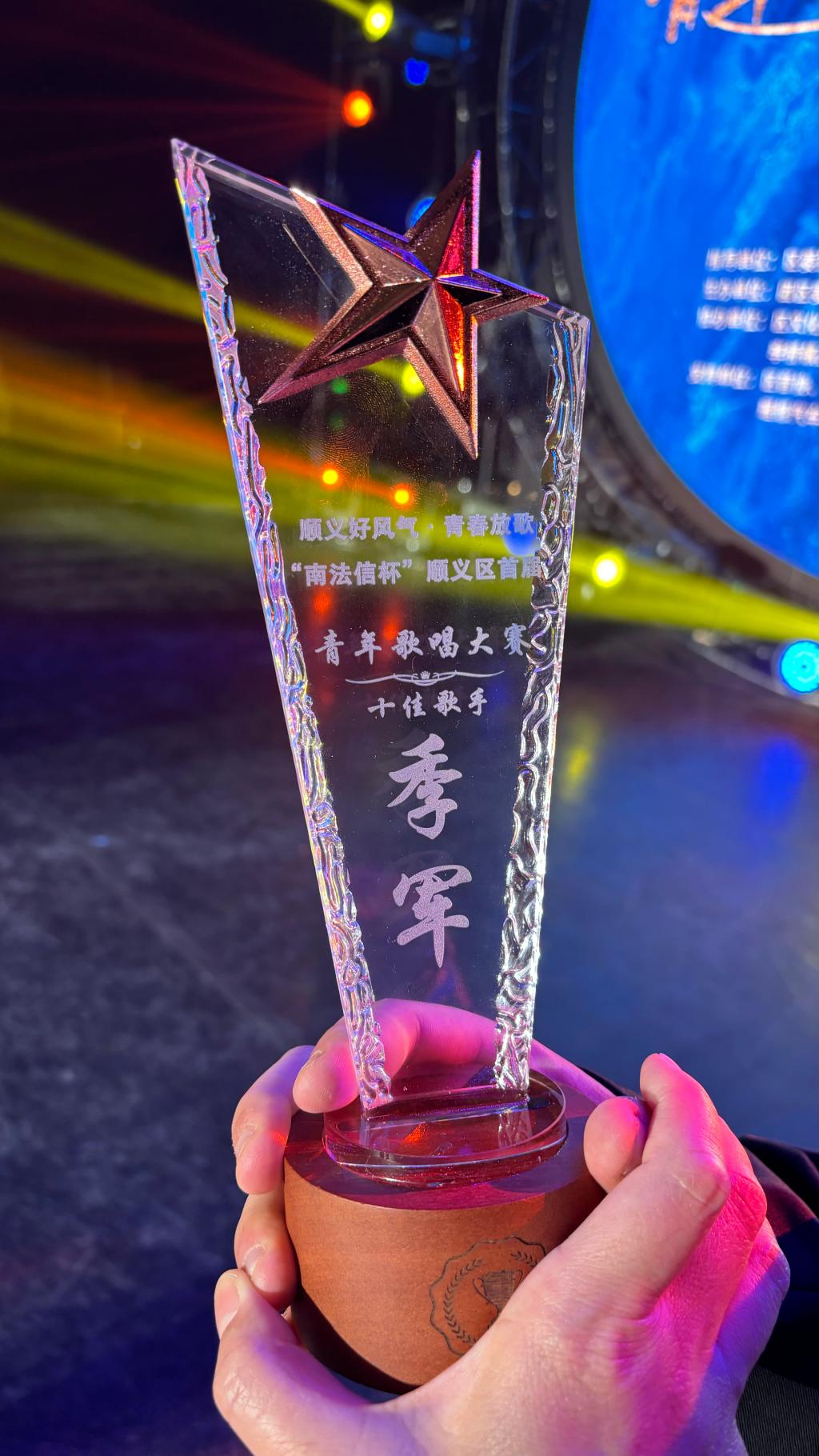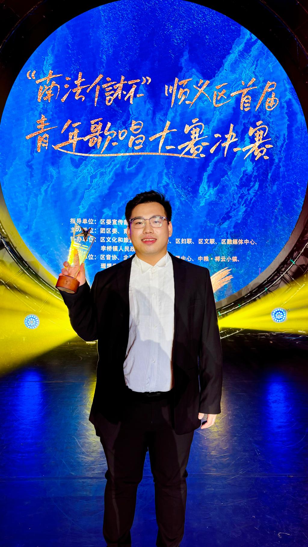 11月8日,由順義區宣傳部、團區委、南法信鎮政府等二十余部門聯合舉辦的“順義好風氣 青春放歌”南法信杯首屆青年歌唱大賽決賽在順義區國策劇院舉行,我校2023級音樂教育專業學生伍庭寬,以一首激情澎湃的歌曲《向往》,在大賽中展露頭角,獲得本屆大賽十佳歌手“季軍”的榮譽。