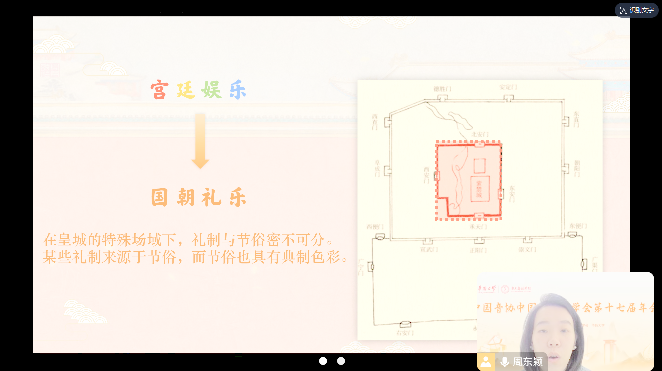 11月10日,教師周東穎以《音樂疆界的凝結與流動——清代中葉北京城戲曲活動記憶的重建》為題,創新性地運用跨學科研究方法——音樂地理學,深入探究清代皇城與宮城的戲曲音樂活動。對宮城與皇城多處戲曲音樂活動史料的解讀別具一格,有力地凸顯了戲曲音樂活動在清代中葉宮城與皇城所具有的雙重功用。在該研究中,周東穎密切關注到2019年故宮養心殿修繕項目中出土的新史料,并將其巧妙地融入其中。同行專家對周東穎的研究給予了高度肯定,認為其研究史料來源獨特、方法新穎。