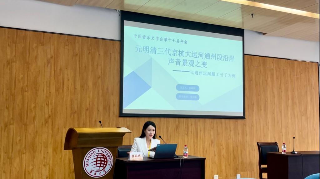 學生張婉琪則以《元明清三代京杭大運河通州段沿岸聲音景觀之變——以運河船工號子為例》(指導教師:周東穎)為題進行報告,此報告乃是其研究生科創項目(指導教師:羅帥、周東穎)的升華之作。盡管張婉琪的主專業為音樂教育,但在與老師共同的采風實踐中,她關注到京杭運河通州段的音樂史料,在研究中聚焦京杭大運河通州段研究的稀缺現狀,運用區域音樂史的研究法,依據運河變遷及區域文化特點,深入探討沿岸聲音景觀,分析船工號子的構成與演化規律。