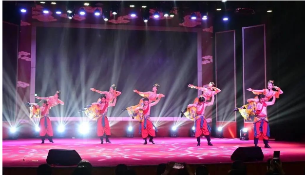 演出在我校的原創劇目《使至塞上》中拉開序幕。《使至塞上》是表演學部舞蹈表演(國際標準舞)專業為慶祝北城建校40周年特別創作的原創劇目,入選2024年度北京高校校園原創文化精品項目,受到中國文聯特別邀請參加本次演出。該節目的意境源自王維的著名詩詞《使至塞上》,“大漠孤煙直,長河落日圓”生動地描繪了雄壯而瑰麗的邊塞風光——古絲綢之路。舞蹈旨在以“洋為中用”的理念向世界傳播我國偉大的敦煌文明,彰顯我泱泱中華海納百川的大國氣象。是在“一帶一路”倡議思想的指引下,對敦煌文化的深度關注,展現了中華文明的延續和傳承。