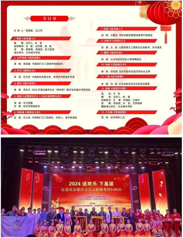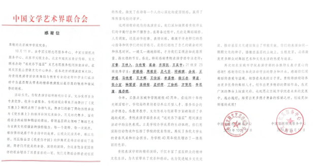 近日,我校收到中國文聯的錦旗與感謝信,表彰我校積極響應中國文聯志愿服務中心號召,走進延慶區文藝志愿服務慰問演出。