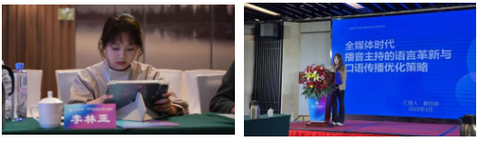 本次大會學術研討會,由《藝術傳播研究》《傳媒》以及《視聽理論與實踐》編輯部提供學術支持,來自中國傳媒大學、中國人民大學、山西傳媒學院、大同大學、人民日報報社等全國10余所高校和單位30余位專家學者參加會議,與會學者圍繞智媒時代口語傳播人才培養與服務國家戰略實踐探索相關問題進行學術研討。劉萌雪、劉東昌共同參加“新時代口語傳播理論與人才培養”分論壇,由黃鈺婷代表發言;在“青年學者及碩博專場論壇”中,2024級碩士研究生李林亞進行發言。