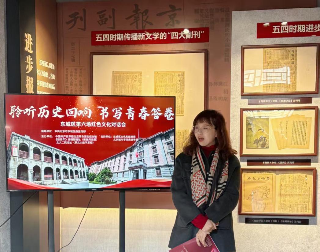 對話會上,表演學部教師王芊以“藝術賦能歷史現場,共創紅色教育新范式”為題,分享了基層紅色文化傳播的實踐經驗。她結合東城區豐富的文化資源與我校表演學部的專業優勢,與參會嘉賓及專家深入探討,提出構建“政府引導、場館支撐、學校深度參與”的長效合作機制,推動未來創排更多“場館中的文化劇目”。這一路徑不僅有助于活化利用紅色資源,更形成了一條多方協同、價值共創的育人新渠道。