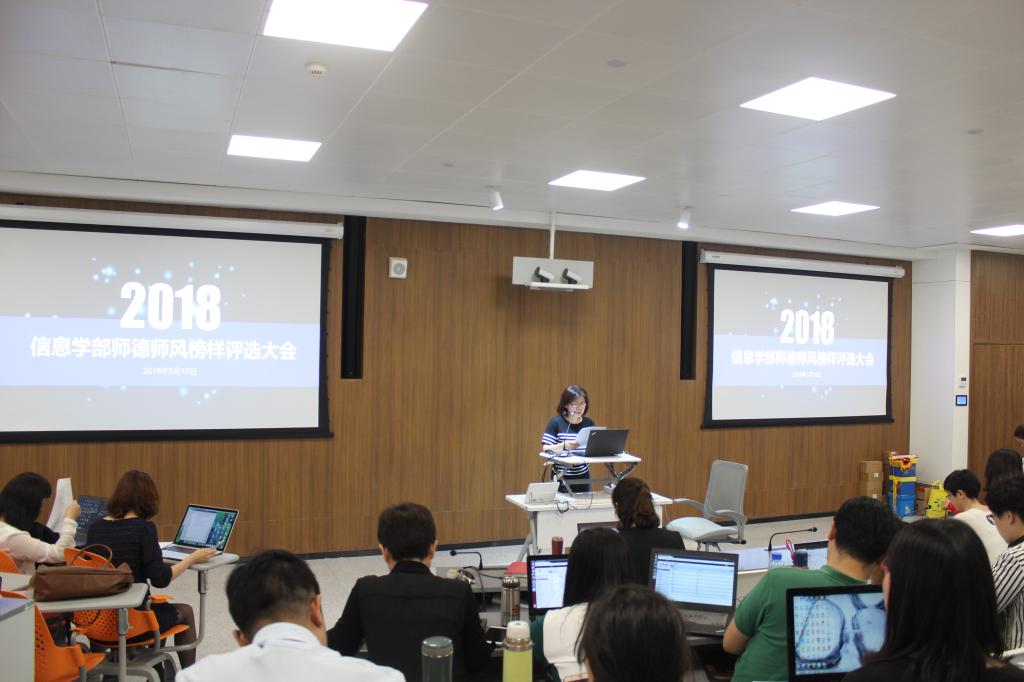 2018年5月,信息學(xué)部以我校師德榜樣(先鋒)評選為契機,在學(xué)部內(nèi)組織師德師風(fēng)教育,師德師風(fēng)榜樣(先鋒)事跡挖掘、宣傳,開展全體教師對照學(xué)習(xí)活動。學(xué)部80名在崗教職員工全部參加了該項活動。活動分為兩個階段。第一階段,以黨小組(六個)為單位,涵蓋黨小組所覆蓋的本部門的所有非黨員教師,充分收集本組教師師德師風(fēng)先進事跡并醞釀候選人。確定高秋紅、邵秀鳳、賈銘鈺、黃群、王艷玲、張明春六位教師為師德師風(fēng)榜樣(先鋒)候選人。第二階段,5月10日下午,召開學(xué)部全體大會,宣傳6名候選人事跡,評選學(xué)部級師德師風(fēng)榜樣(先鋒)。支部書記趙佳因老師首先指出這次會議不僅是學(xué)部師德榜樣(先鋒)評選會,更是引導(dǎo)廣大教師向師德榜樣(先鋒)學(xué)習(xí)的一次大會,并再次宣講了師德師風(fēng)榜樣(先鋒)的評選標準為每個教師的努力目標。隨后,各黨小組介紹其候選人的先進事跡。6位老師的事跡都非常感人,全體教師受到了一次生動的師德師風(fēng)教育。根據(jù)現(xiàn)場票數(shù),邵秀鳳、黃群、賈銘鈺三位老師被評為信息學(xué)部2018年“師德師風(fēng)榜樣(先鋒)”。會后經(jīng)學(xué)部師德師風(fēng)領(lǐng)導(dǎo)小組討論,推薦邵秀鳳參與學(xué)校評選。學(xué)部將深入開展師德榜樣(先鋒)事跡宣傳系列活動,通過文字、圖片、短視頻等多種形式在微信公眾號專項宣傳。