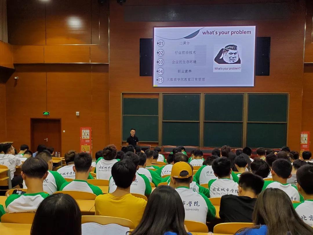企業導師付越在學生成長中起著助推成長的作用。他介紹了企業班主任分管的工作,企業班主任主要負責學生企業技術前沿、職業素養、企業講座和參觀等內容,使學生了解了專業校企合作的特色。付越老師提升了新生們的專業興趣,從而更好的規劃大學四年的學習。