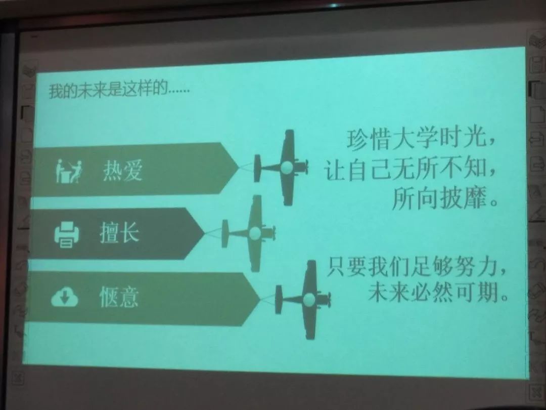 在生活方面,師姐告訴我們無論任何時候都要積極陽光保持正能量,師姐更是希望我們有這樣一些品德:孝順懂事,認真負責,一絲不茍,態度端正,積極樂觀,熱情大方。最后師姐告訴我們要對自己的未來有規劃有展望。同時學姐以兩段話總結到:珍惜大學時光,讓自己無所不知所向披靡!只要我們足夠努力,未來必然可期。