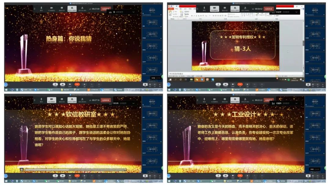 今年的線上總結會特別設計了“你說我猜”環節,頒獎人描述典型事跡及人物畫像,其他老師答出獲獎老師的姓名,全體老師積極參與,互動熱烈,討論區鮮花和掌聲不斷。通過這種方式,老師們能夠充分感受到學部對自己積極工作的認可,同時也是對后續工作的激勵。