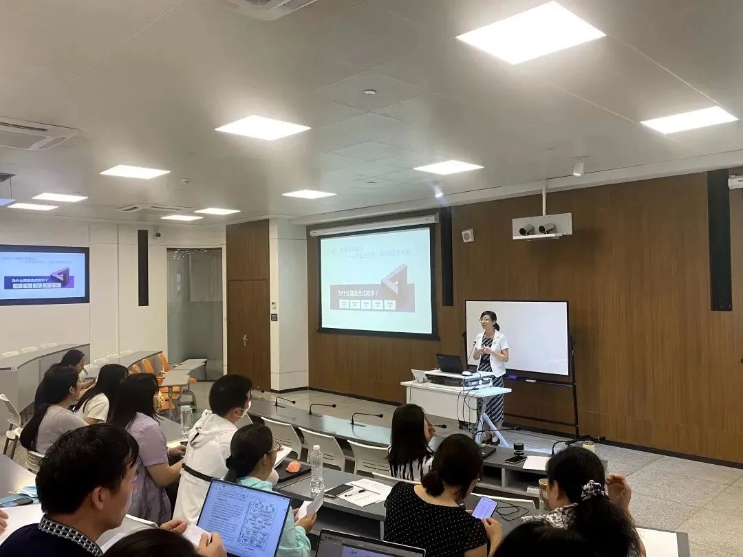 高秋紅老師為大家精心設(shè)計了“基于流程的混合式課程設(shè)計工作坊”體驗活動,帶領(lǐng)老師們主動思考,積極互動,從明確改革起點,課程整體規(guī)劃,設(shè)計教學(xué)活動,凝練混合教學(xué)模式以及展示混合教學(xué)設(shè)計等5個環(huán)節(jié),深入體驗了 “多感官刺激”的智慧課堂教學(xué)設(shè)計全過程。