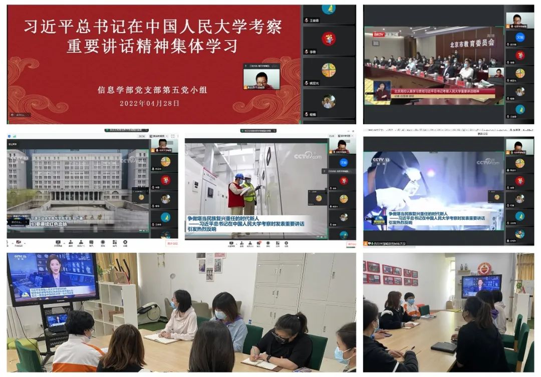 信息學部黨支部通過集體學習、黨小組討論、個人學習等多種形式,組織黨員深入學習貫徹習近平總書記在人民大學考察時的重要講話精神,學部黨員積極參與并分享自己的學習體會。