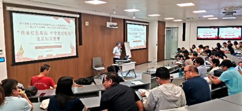 隨后,支部開展了知識競賽,此次知識競賽分為必答題、搶答題、風險搶答題3個環節,比賽內容涵蓋了二十屆三中全會精神、黨規黨紀、紅色文化等多個方面。在比賽中,參賽選手們抽簽答題、拼手速、比腦力,以扎實的理論功底,沉著應答,現場氣氛緊張而激烈,精彩的對答贏得現場觀眾陣陣喝彩。
