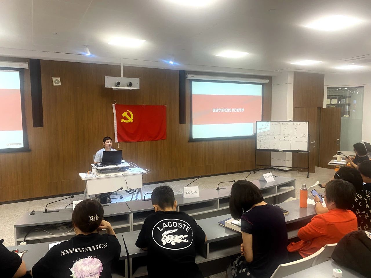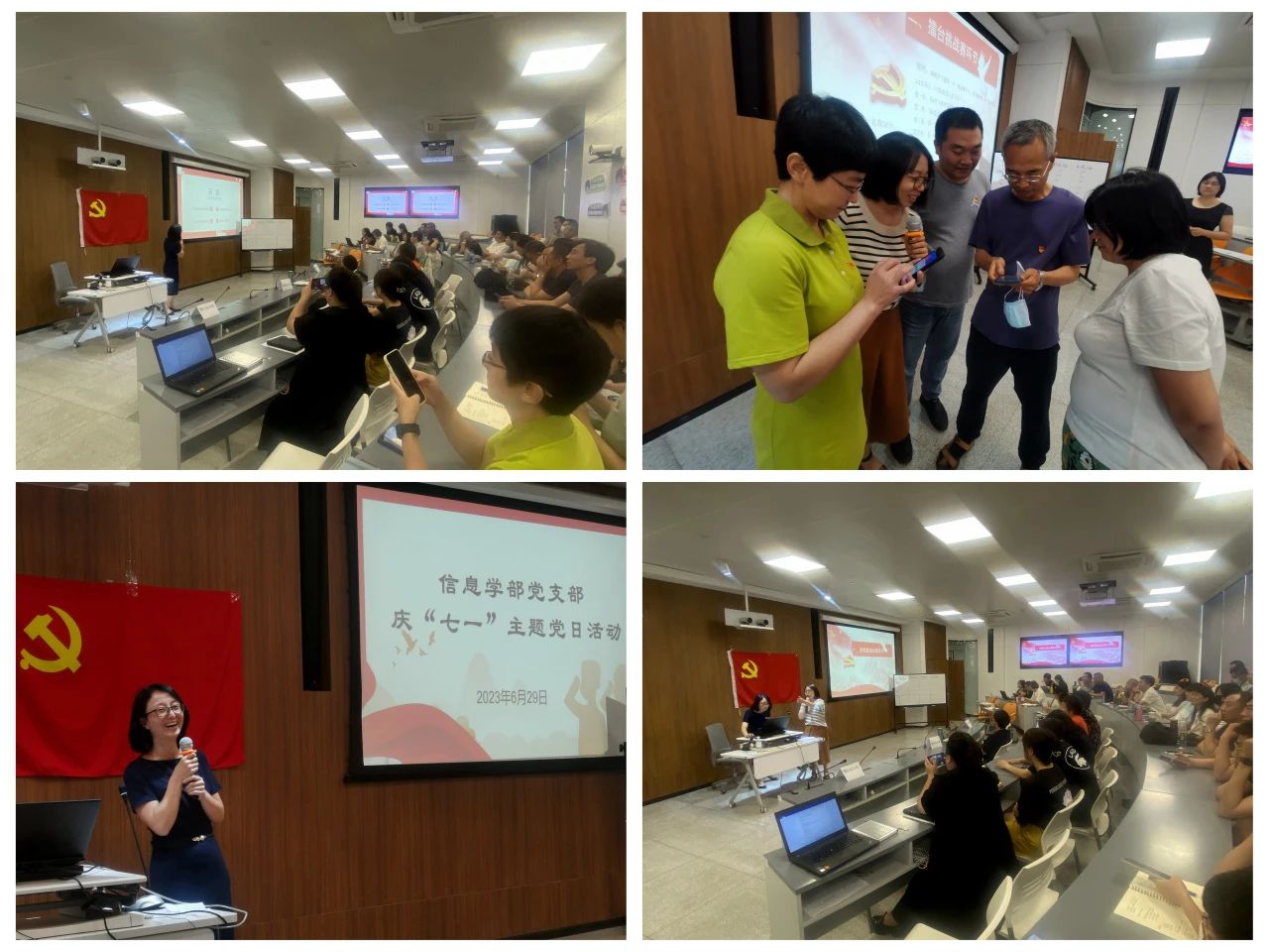6月29日,信息學部黨支部在3號實訓樓115智慧教室開展“迎七一”主題黨日活動,通過書記講黨課、主題教育學習知識競賽、主題教育學習心得分享、集體重溫入黨誓詞等多項活動,全體黨員和入黨積極分子以學鑄魂、以學增智、以學正風、以學促干,推動支部主題教育走深走實。